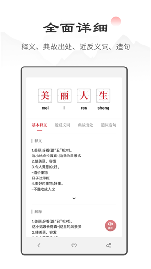 2.智能语音解析播报功能,每个词语专门配备有详细的语音播报服务,学习更轻松。