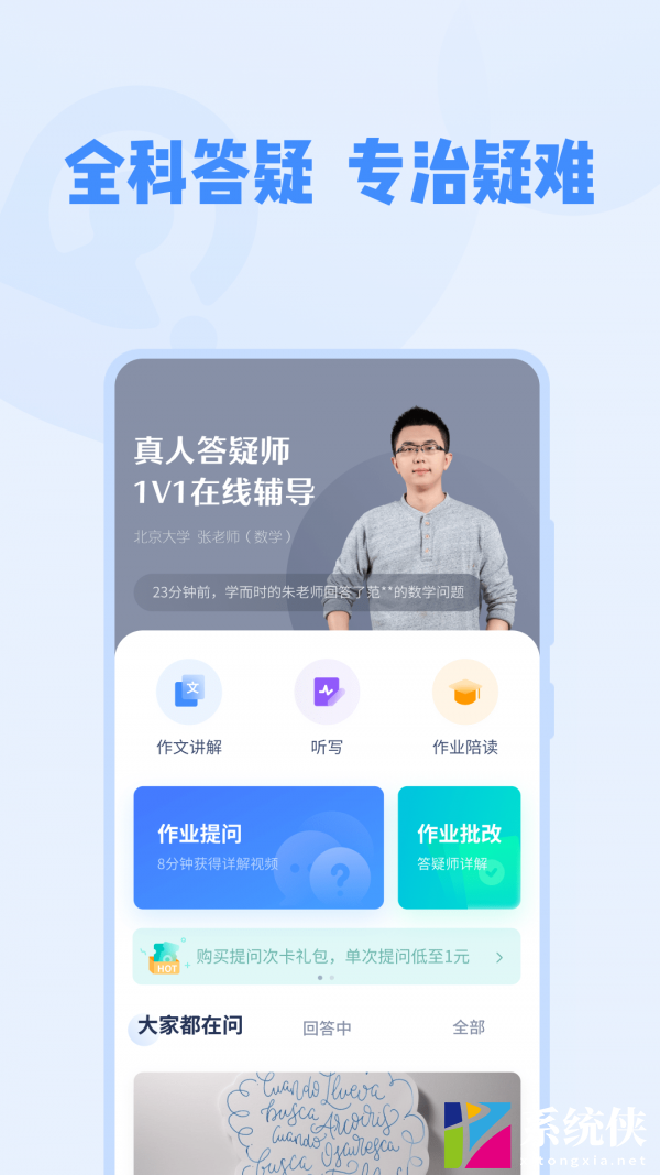 1、是一款针对小学至高中学生全科课业问题的真人答疑App。任何学习问题,不懂即问;