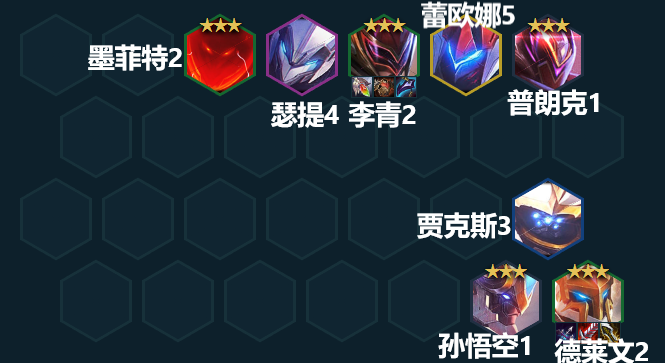 如果此时血量健康,继续攒钱上9找二星厄斐琉斯和二星蕾欧娜做主C和主T;