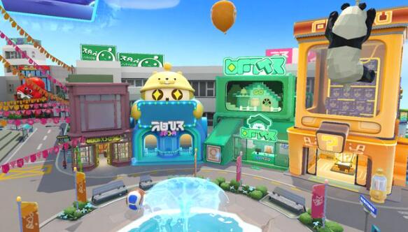 在这里有一个非常可爱的大熊猫趴在盲盒机大楼上面,对于分岛建筑的入口也有了一定的更改,玩家可以进去看一看。