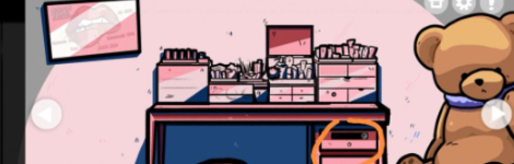 1、进入游戏后我们根据不同的口红色号和使用的多少来判断出密码,密码是4520154这样我们就可以打开右下角的柜子了。