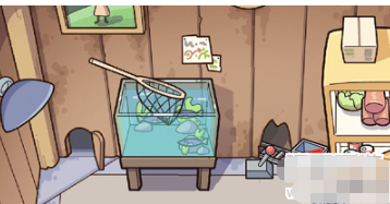 1、点击左边的滤网拖到鱼缸里面将眼镜拿出来。