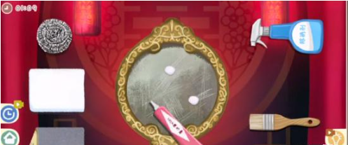 6、最后使用砂纸打磨镜子表面,再使用刷子将表面刷干净就可以通关了。