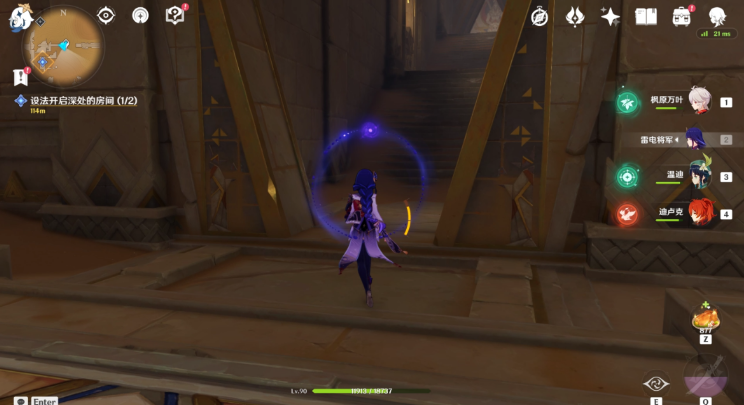 21、走到底,会有房间出现。在草神瞳右方可以看到元能光锥。使用四叶印接近。