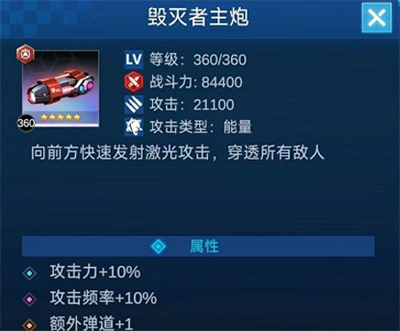 主炮推荐3:毁灭者主炮——发射高速穿透激光,可同时打击多个目标,性能均衡,适应多种战斗环境。