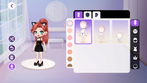 1、保存人物形象:完成角色定制后,点击左侧向下箭头按钮即可保存当前造型。