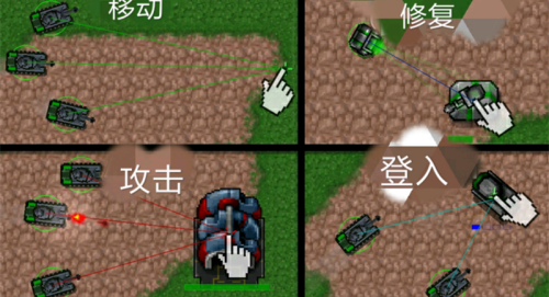 游戏操作采用直观点击方式:单击选择单位,双击同类单位快速编组;长按屏幕以手势圈选大范围部队;两点拖动形成矩形框选,便于大规模调度。建造车是核心单位,负责建造与维修建筑(不可修复移动单位),初始资金紧张时,建议立即在资源坑上方建造“资金提取器”以稳定收入。