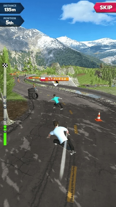 游戏融合了极限运动与高速竞速元素,打造沉浸式滑板体验。从都市高楼间的狭窄楼梯到山林小径的崎岖地形,每一条赛道都充满未知与挑战。