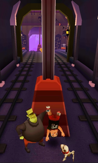 游戏操作全部用触摸手势完成,在屏幕上往上划是跳跃,往下划是翻滚,左右划是变换轨道。游戏中最主要的障碍物就是铁轨上的一截截列车车厢,以及那些横跨在铁轨上高高低低的挡板,利用少年敏捷的身手在这中间穿梭,流畅的动作和精细的画面都很能给人满足感。铁轨中分布着一颗颗金币,你可以把这些金币当做前进道路上的指引,朝着金币多的地方前进。