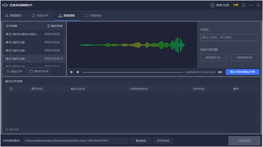 提供了专业的音频提取功能,支持单个或批量文件提取,我们可以通过设置时间段的方式来提取自己需要的音频。