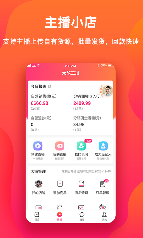 在软件上申请开通小店,经自己的资质信息填好之后,可以非常方便的进行卖货,非常简单。有了这款软件交易变得简单轻松,你也可以成为优秀的直播达人,快来试试看吧!